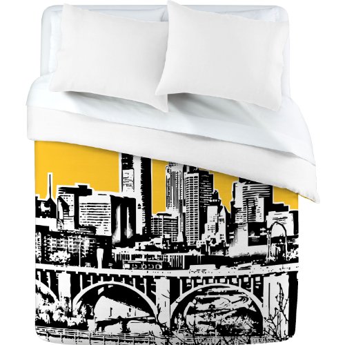 Discount 2013 DENY Designs Bird Ave Minneapolis Yellow Duvet Cover, Queen