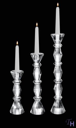 SET OF THREE CRYSTAL MAJESTIC CANDLE STICK HOLDERS